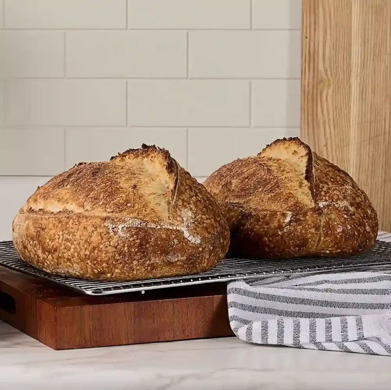 Wenn Sie die Werkzeuge für die Brotherstellung haben, um die Temperatur zu kontrollieren, ist es einfacher, die Fermentation und Gärung vorherzusagen und zu kontrollieren. Sauerteig und normales Brot werden mit einer komplexen Kultur von Bakterien und Hefen hergestellt. Die Temperatur beeinflusst die Art und Weise, wie diese Organismen den Zucker verzehren und so das Aufgehen und den Geschmack des Teigs bewirken. Wenn Ihr Teig schwankenden Temperaturen ausgesetzt ist (eine zugige Küche oder unterschiedliche Temperaturen im Sommer und Winter), werden die Ergebnisse nicht gleichmäßig sein. Wenn es zu kalt ist, fehlt dem Teig sowohl das CO2, das für das Aufgehen erforderlich ist, als auch die Gärung, die den Geschmack erzeugt. Ist es zu warm, kann es sein, dass die Hefe den gesamten verfügbaren Zucker auffrisst und nichts für das zweite Aufgehen oder die Bildung einer knusprigen Kruste übrig bleibt. Kurz gesagt, durch geschickte Steuerung der Temperatur während der Gärung können Sie den Prozess kontrollieren und Ihr Brot mehr oder weniger sauer machen. Dies gibt Ihnen auch die Möglichkeit, jedes Mal einen vorhersehbaren Geschmack, eine Krume und eine Kruste zu erzeugen.